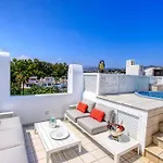 5-slaapkamer 1080 - Golden Beach Jacuzzi omvat een zwembad en een terras en ligt in de Elviria wijk van Marbella, binnen 6 km van El Toro Es Cultura. Het appartement van 260 m^2 is te bereiken op loopafstand van Residencia Tiempo Libre bushalte.